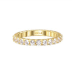 The 3mm Gold Aurelia Band Ring is a captivating blend of elegance and craftsmanship, designed to adorn your fingers with timeless allure. Crafted with precision, this exquisite piece features round stones meticulously set along its circumference, adding a subtle yet dazzling touch.