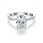 Distinctive and full of character, this 2 carat Oval-cut moissanite ring features a graceful elongated shape that beautifully flatters the finger. The stone is held securely in a 4-prong setting, while the twisted pave band adds a delicate, romantic touch with shimmering accents on every curve.