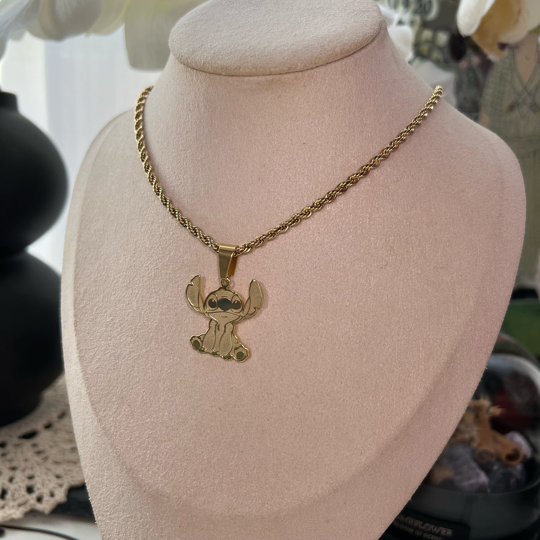 Bring the magic of childhood everywhere you go with this adorable stitch pendant necklace. Made...